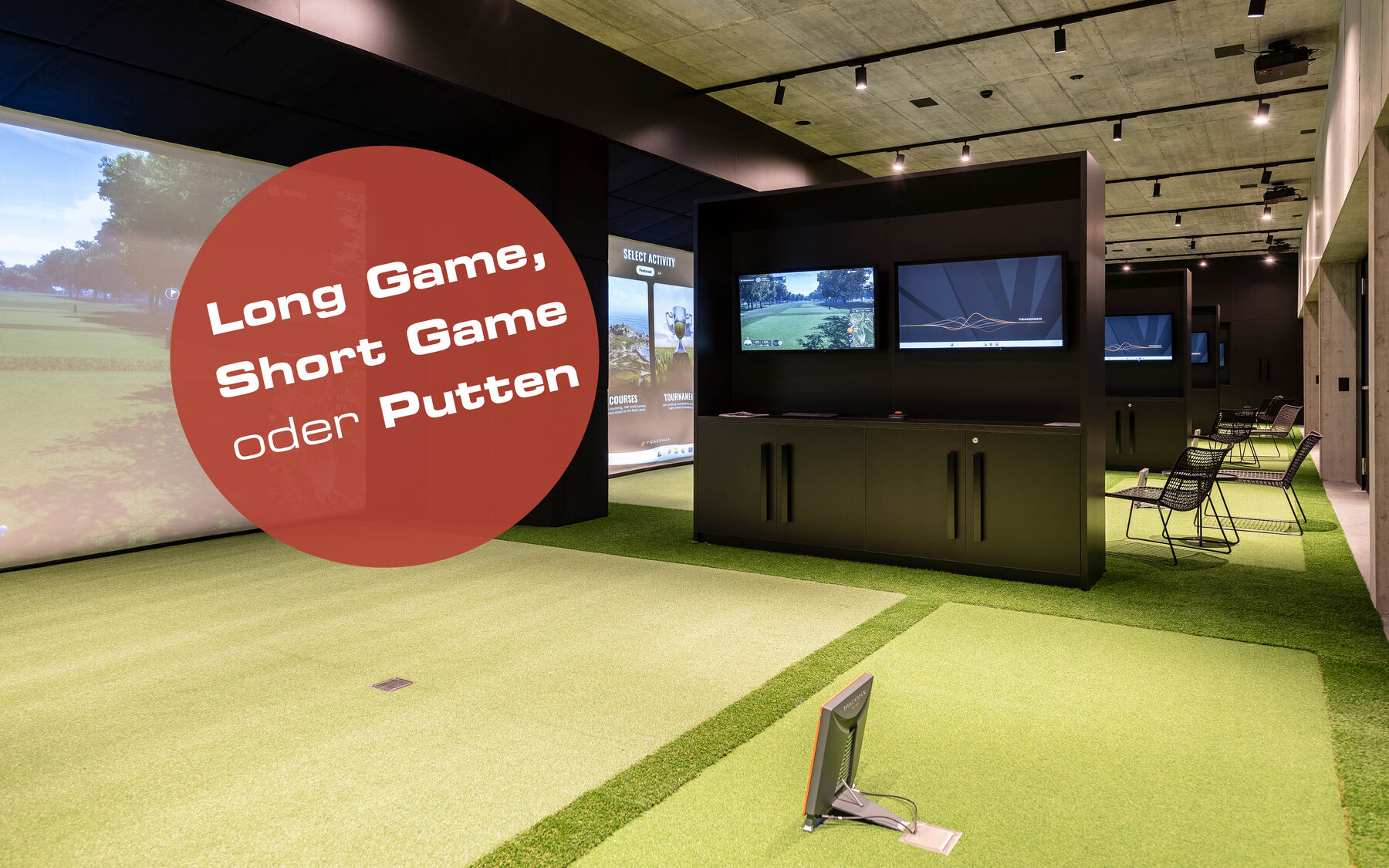 Indoor Short Game: Chippen Sie gezielt und kontrolliert – mit Fokus auf Flug-, Spin- und Rollkontrolle.