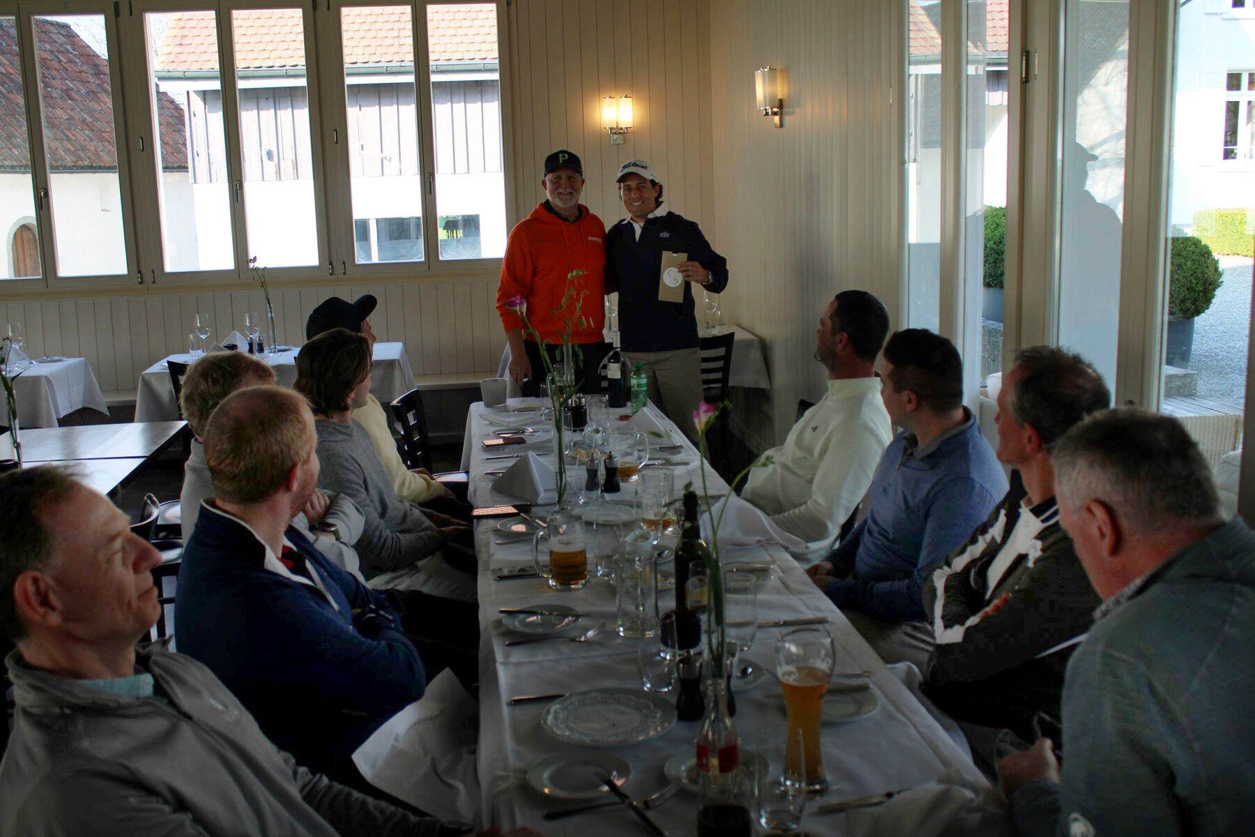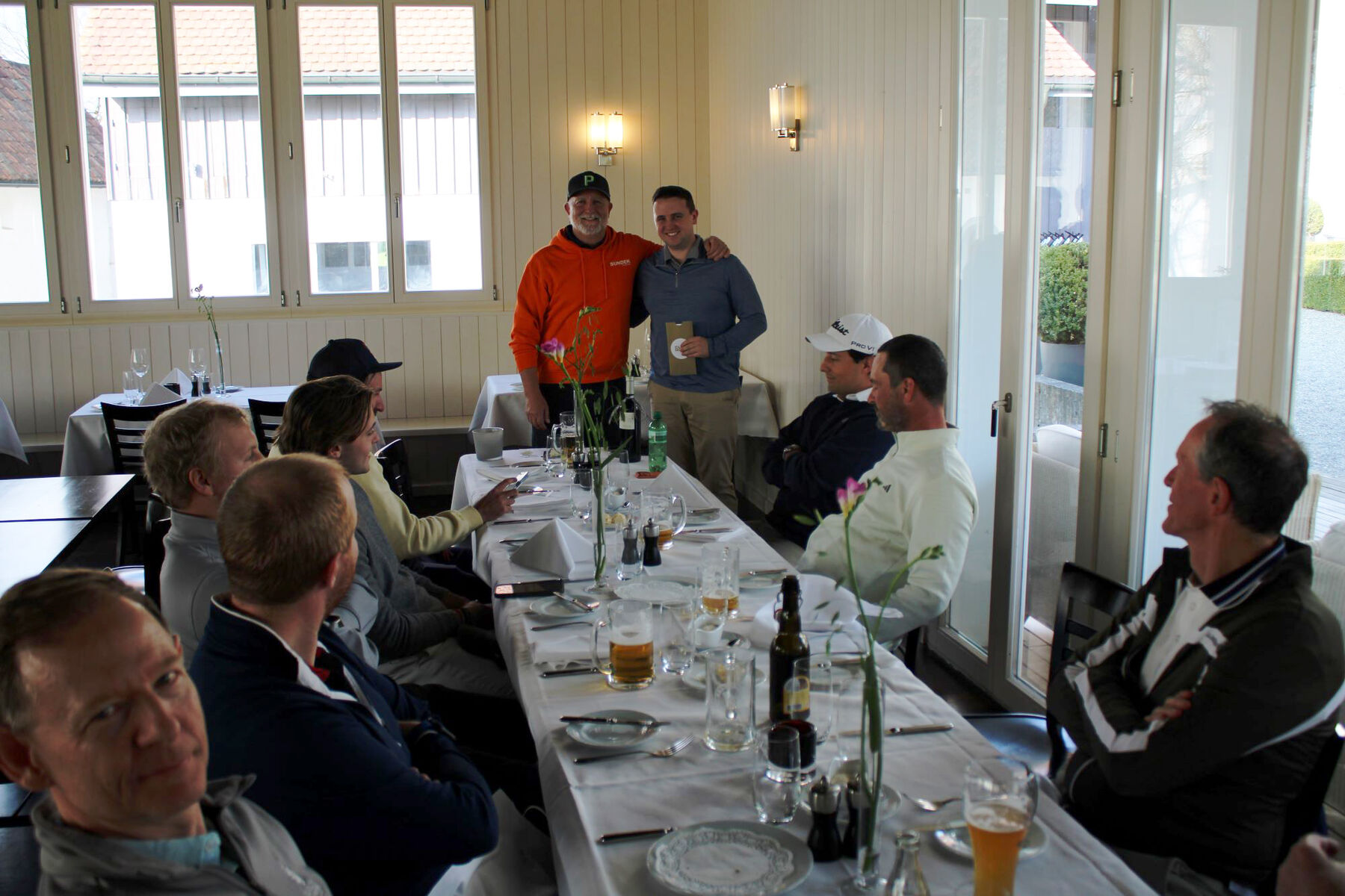 Für die nötige Stärkung unterwegs sorgte ein Zwipf im Bag, bevor sich die Spielerinnen und Spieler nach der Runde im Restaurant «La Gloria» zur gemeinsamen Pasta del Giorno trafen. Dort wurde auf die ersten 18 Loch der Saison angestossen und Phillip Seiffert führte duch die Rangverkündigung. Neben den ersten Netto- und Bruttosiegern der Saison 2026 durfte sich auch ein weiterer Gewinner freuen: Unter allen Teilnehmerinnen und Teilnehmern wurde zusätzlich eine Flasche Wein verlost.