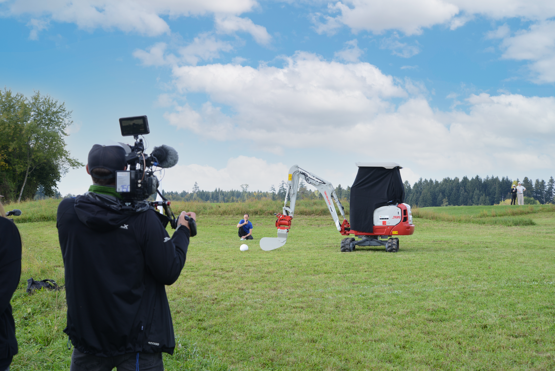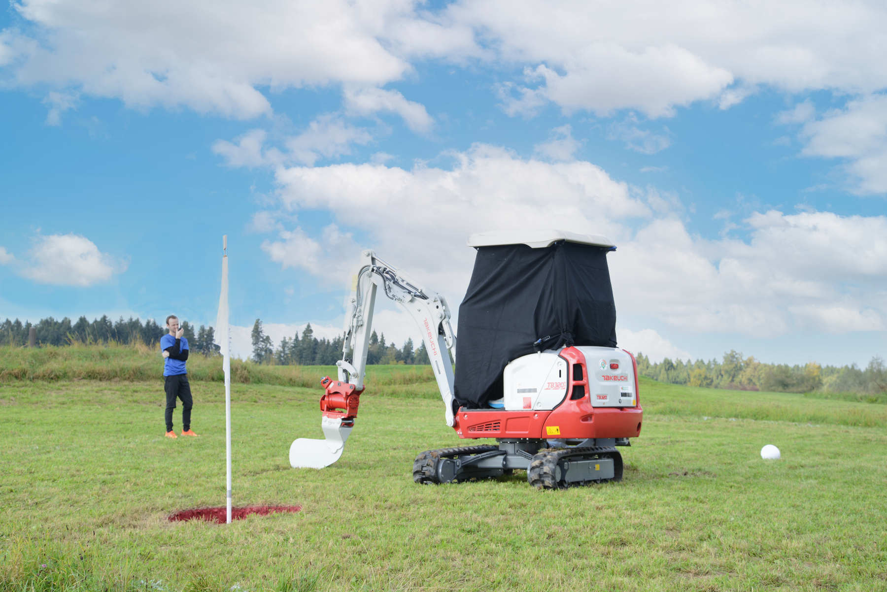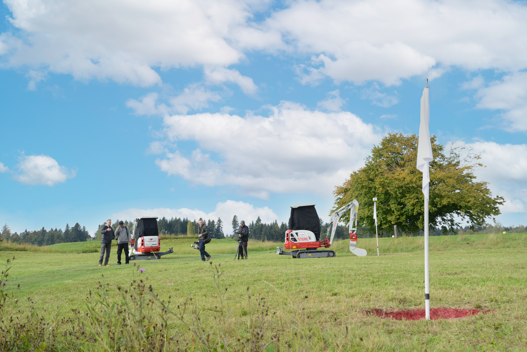 Vor Ort wartete aber nicht das klassische Golf Equipment auf die Teams, sondern ein Bagger mit abgedunkelter Fahrerkabine.